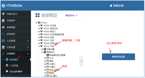 產(chǎn)品數(shù)據(jù)對象的條碼定義(界面樣式)